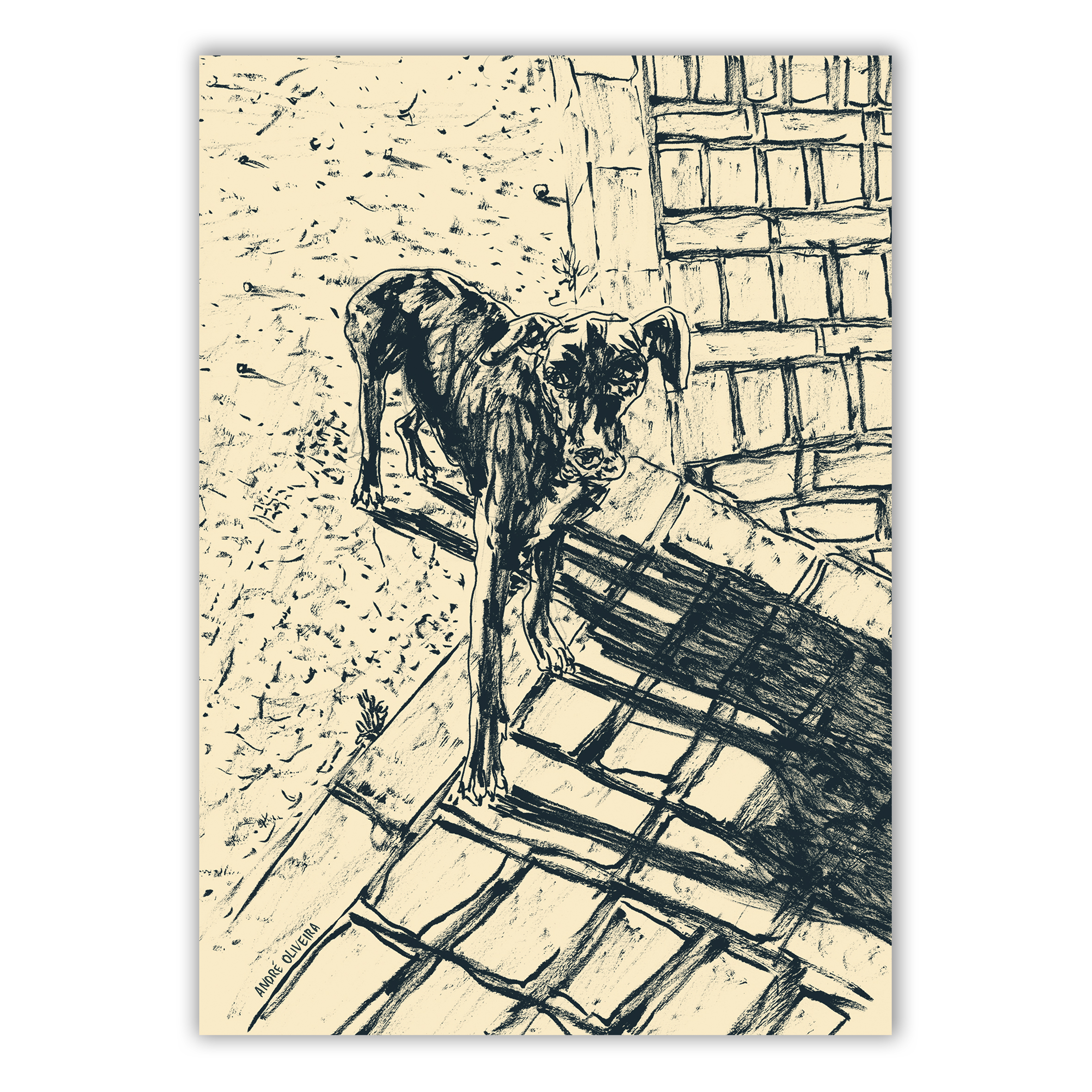 Cães Callejeros é um projeto de longa data que teve início em Montes Claros - MG com os encontros sempre marcantes do artista André Oliveira com cães de rua, se extendendo pelas viagens que fez em outros cantos do Brasil. Ao fotografar ao acaso estes cães, despertaram-se pensamentos sobre como estes encontros alteram a sensação de tempo e ritmo de vida, levando o artista a desenhar estas fotografias, se alinhando ao próprio ritmo dos cães.