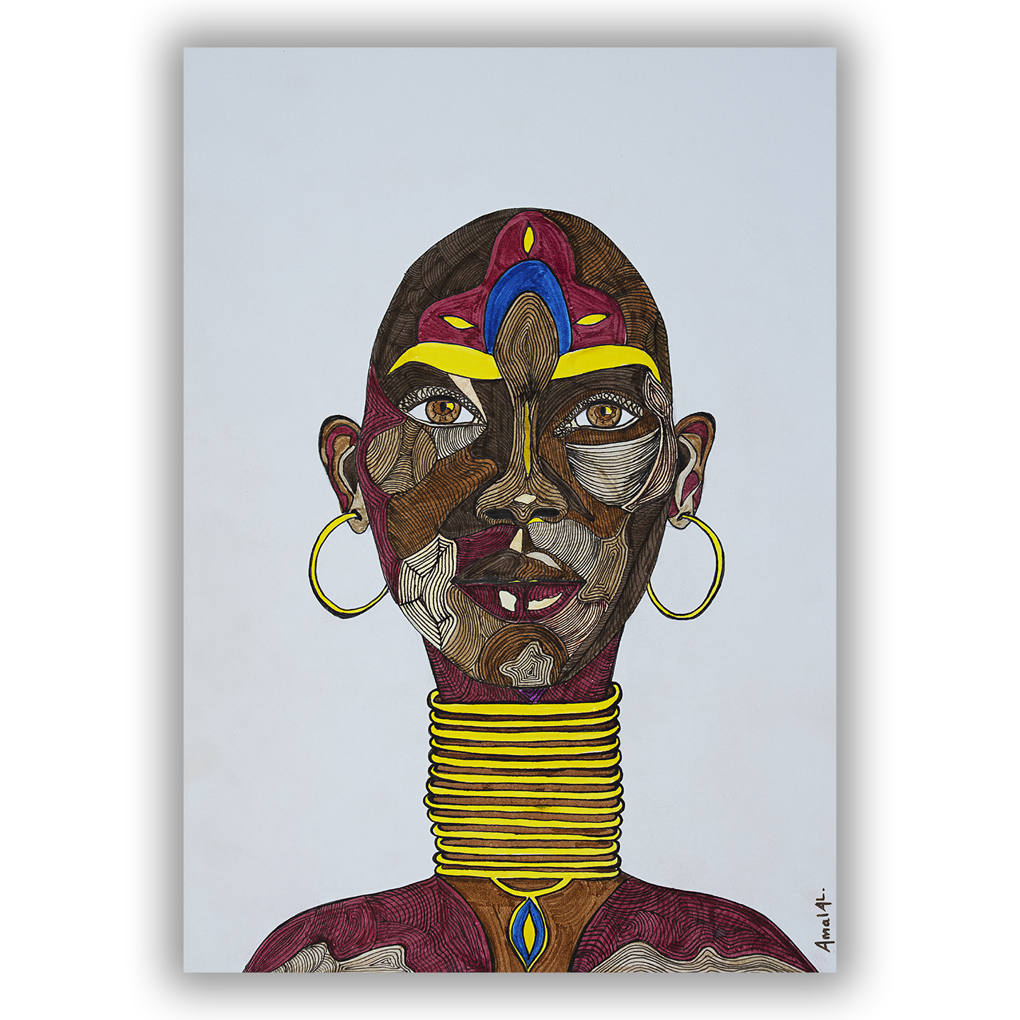 Amal é uma pintora autodidata baseada em Genebra, de origem egípcia. Seu trabalho se concentra na figura humana por meio do retrato, explorando a presença como uma força silenciosa, porém poderosa. Influenciadas por viagens, identidades étnicas e pela exploração interior, suas pinturas entrelaçam identidade e estados de ser. Por meio da postura, do olhar e de cores vibrantes e intensas, Amal investiga a presença e a energia que existe sob a superfície, permitindo que seus retratos funcionem como paisagens interiores, onde a quietude e a cor carregam uma profundidade simbólica.