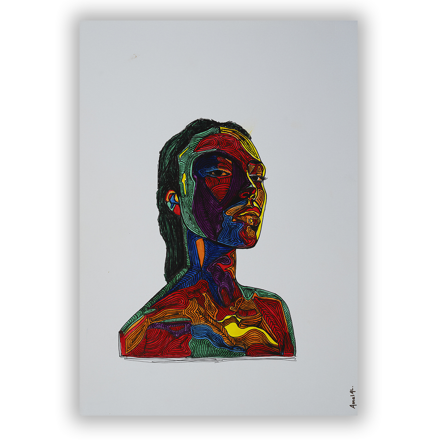 Linhas se movem livremente, formando seus próprios padrões. Por meio da cor e do gesto, cada retrato revela uma presença viva.