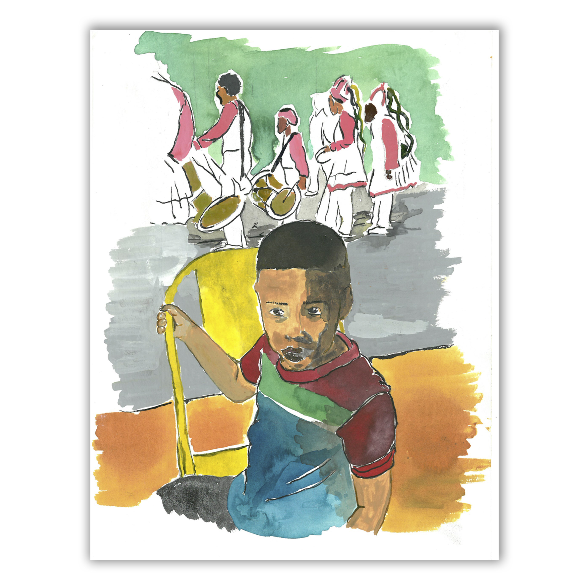 "É meu desejo que o espectador se veja e se sinta representado no trabalho. Trata-se de múltiplas narrativas, que transformam minhas experiências pessoais em experiências coletivas. A fotografia é a base para construção de meus desenhos, monotipias, desenhos de observação e transposições de imagens. A tinta nanquim, preto e em várias cores, giz pastel, lápis H dentre outros são aplicadas sobre papéis variados".